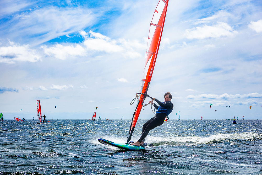 - szkolenia windsurfingowego wraz z wypożyczeniem sprzętu – 6 dni po 2 h (600 zł)