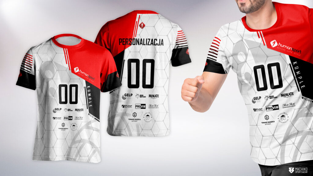 Każdy komplet obejmuje 2 koszulki (białą i czerwoną) z tkaniny technicznej (nie ma możliwości zamówienia tylko jednej sztuki!).